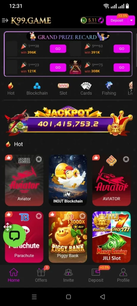 K99 Game is popular because it is simple, fast, and reliable. The app does not require high end mobile phones. Even basic Android devices can run it smoothly. The app also supports quick withdrawals, which many players look for in a casino app.